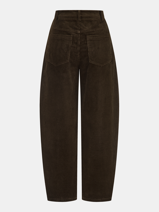 Belden Orta Yükseklikte, Geniş Paçalı, Büzgülü Kadife Pantolon