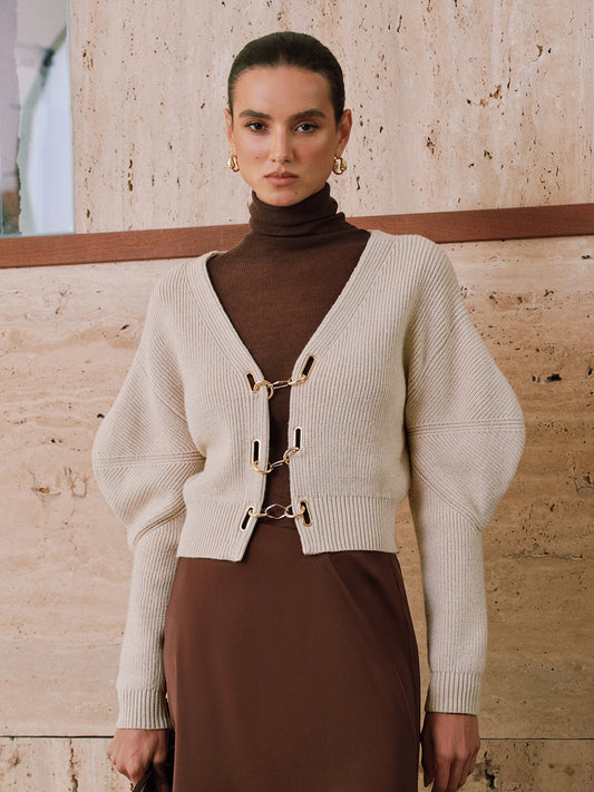 35% İndirimKabarık Kollu Zincir Detaylı Örgü Hırka