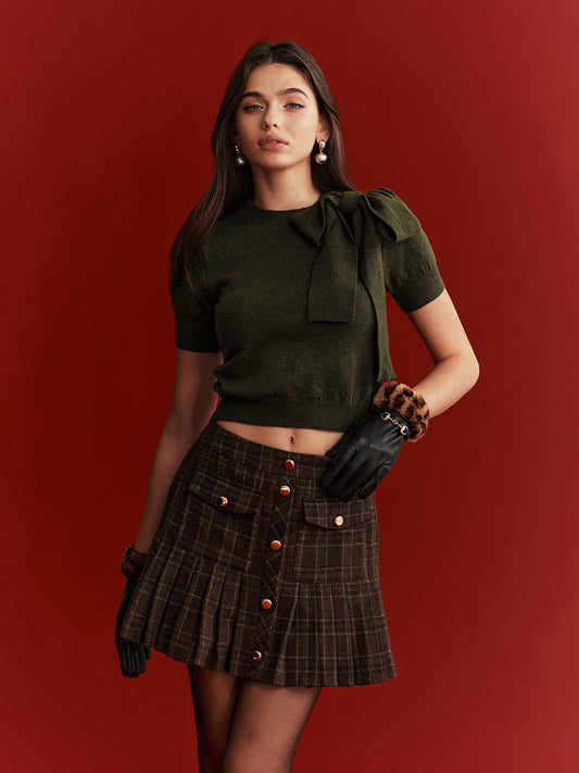 Bol Kesimli, Fitilli Panelli, Düğmeli Bel Detaylı Örme Bluz