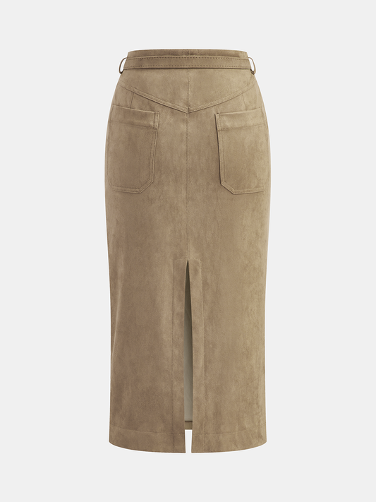 33% İndirimKemerli Süet Midi Etek